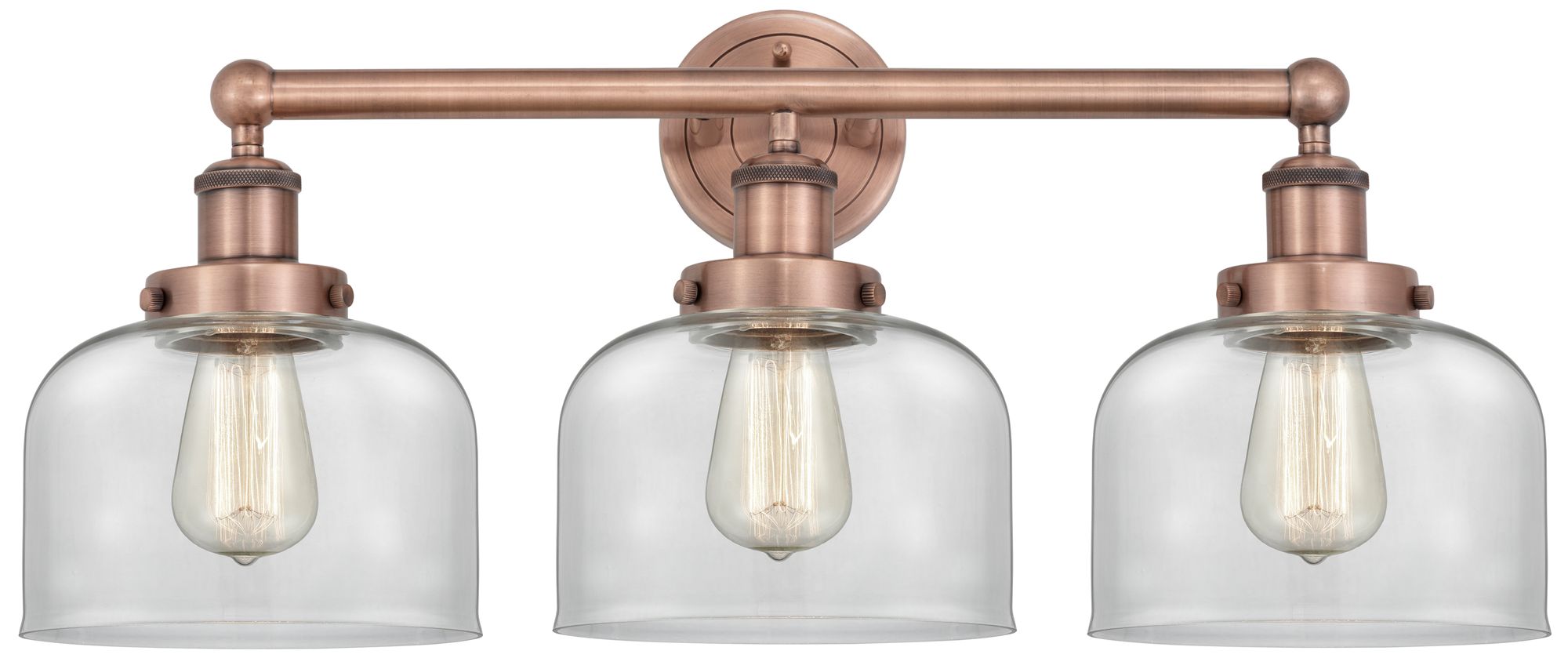 Edison Large Bell 24.5"W 3 Light Antique Copper Bath Light With Clear