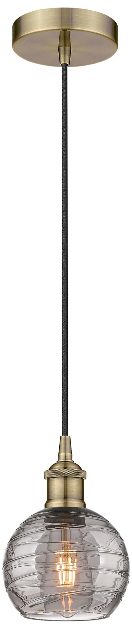 Edison Athens 5.88"W Antique Brass Corded Mini Pendant w/ Smoke Swirl