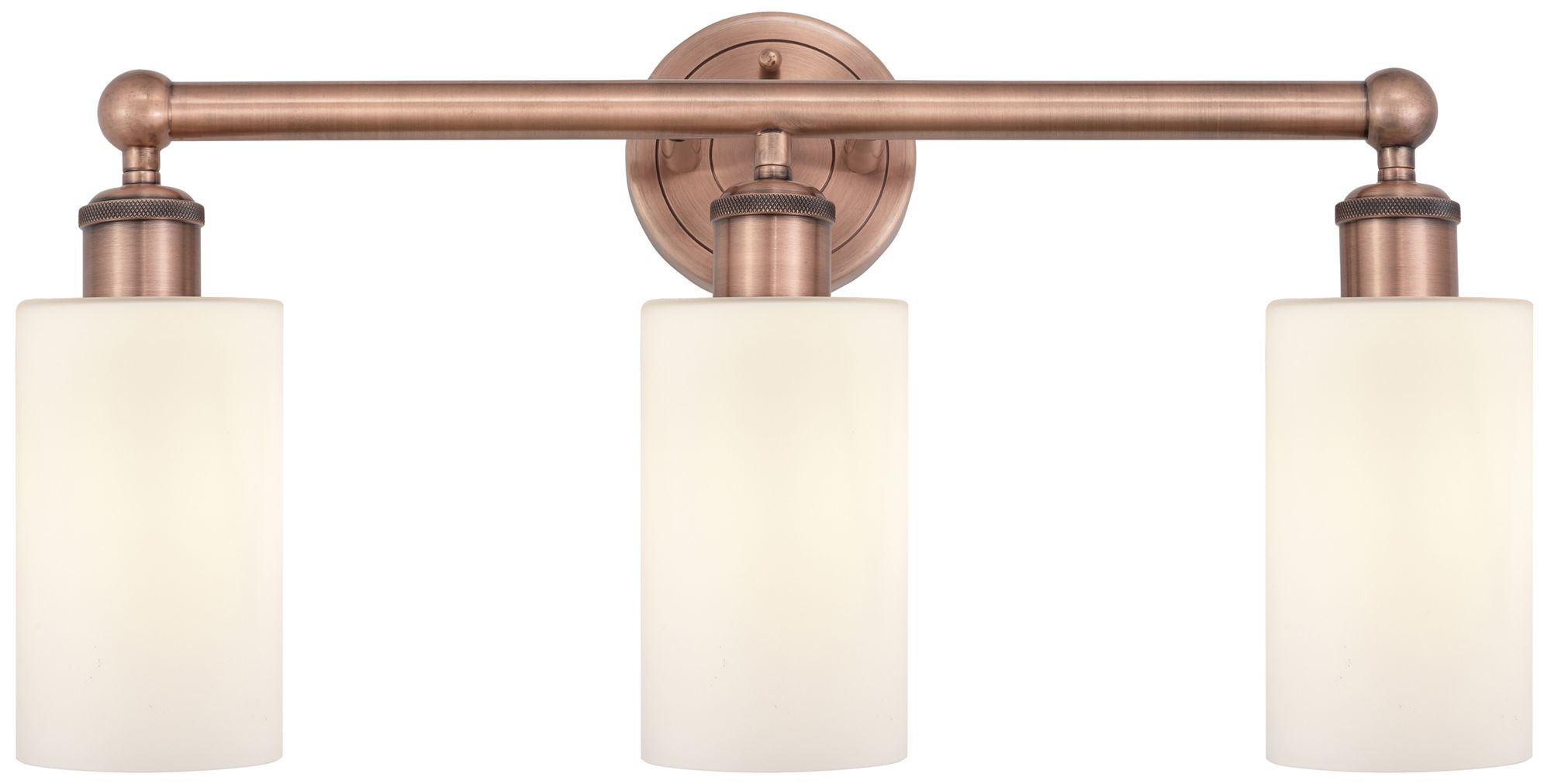 Clymer 21.88"W 3 Light Antique Copper Bath Vanity Light With White Sha
