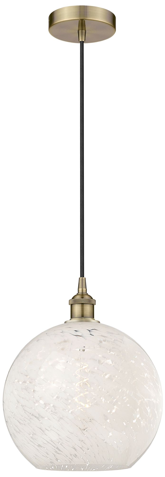 Edison 12" Wide Antique Brass Cord Hung Pendant With White Mouchette S