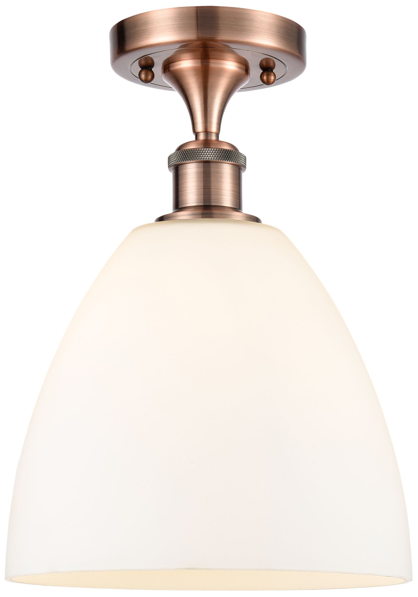 Bristol Glass 9" Semi-Flush Mount - Antique Copper - Matte White Shad