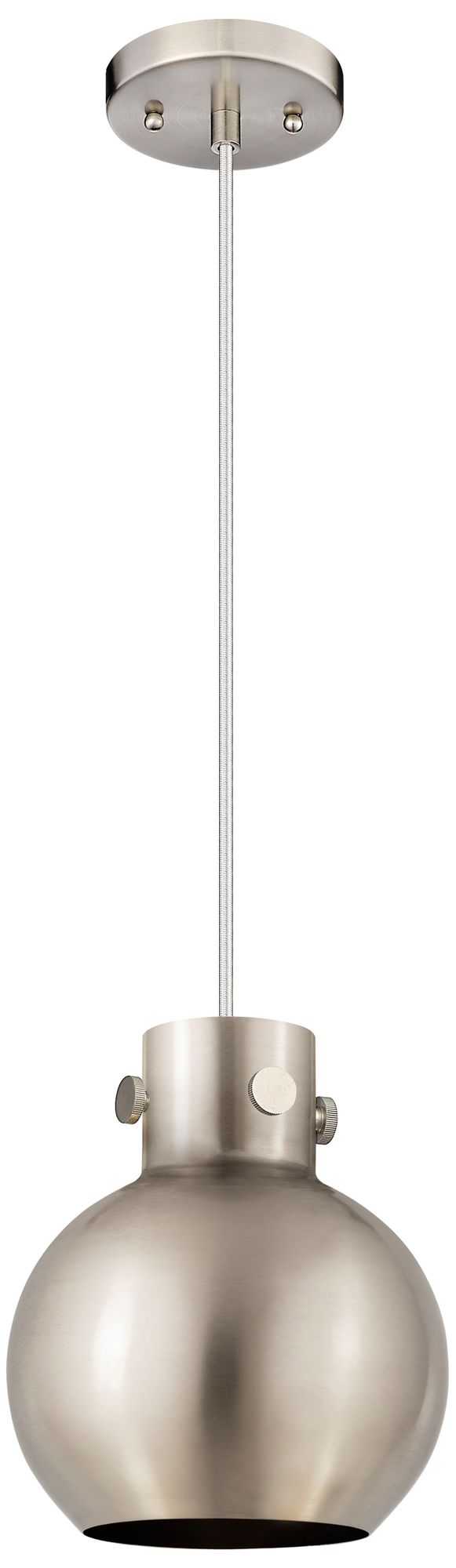 Newton Metal Sphere 8"W Satin Nickel Corded Pendant w/ Satin Nickel Sh