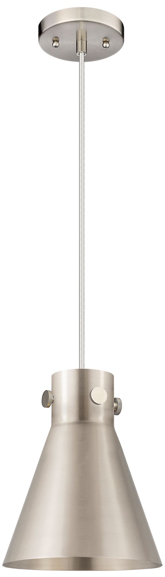 Newton Metal Cone 8"W Satin Nickel Cord Hung Pendant w/ Satin Nickel S