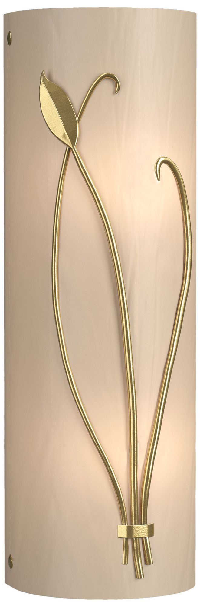 Forged Leaf and Stem 17" High Modern Brass Sconce w/ White Art Glass S