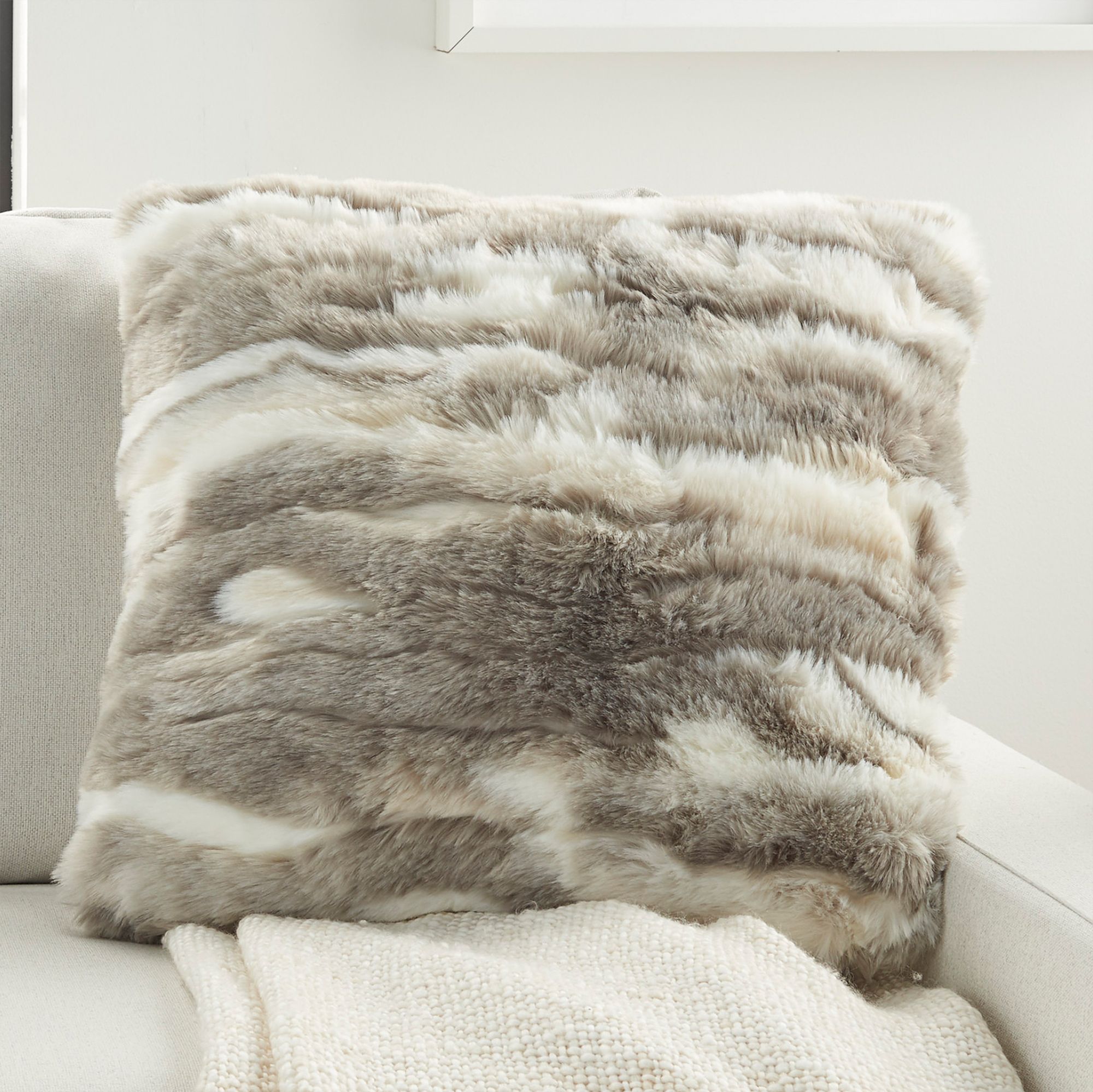 Faux Fur Gray Angora Rabbit 20" Square Throw Pillow