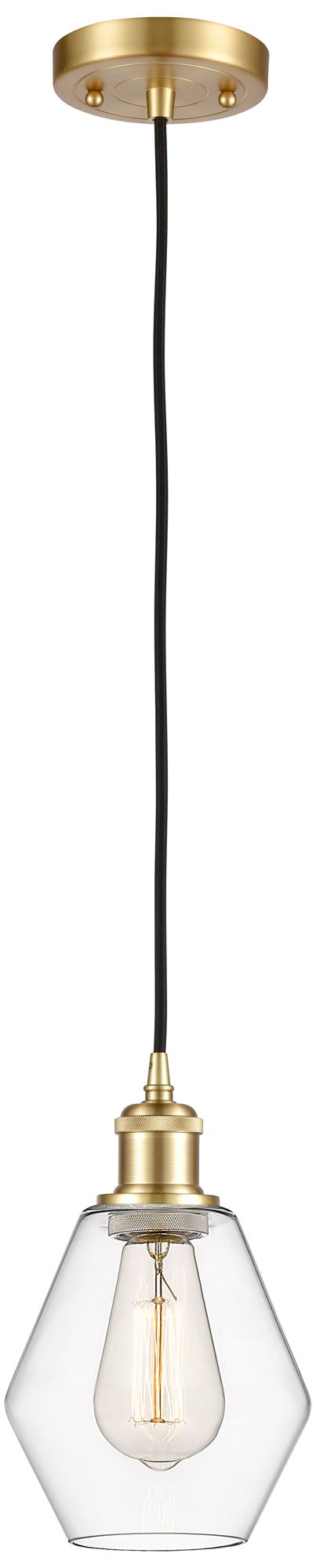 Ballston Cindyrella 6" Wide Satin Gold Corded Mini Pendant w/ Clear Sh