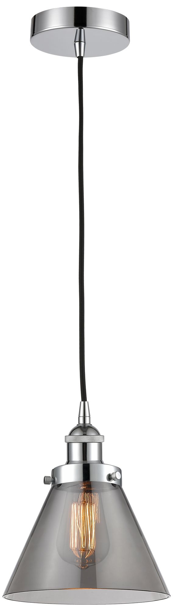Cone 8" Polished Chrome Mini Pendant w/ Plated Smoke Shade