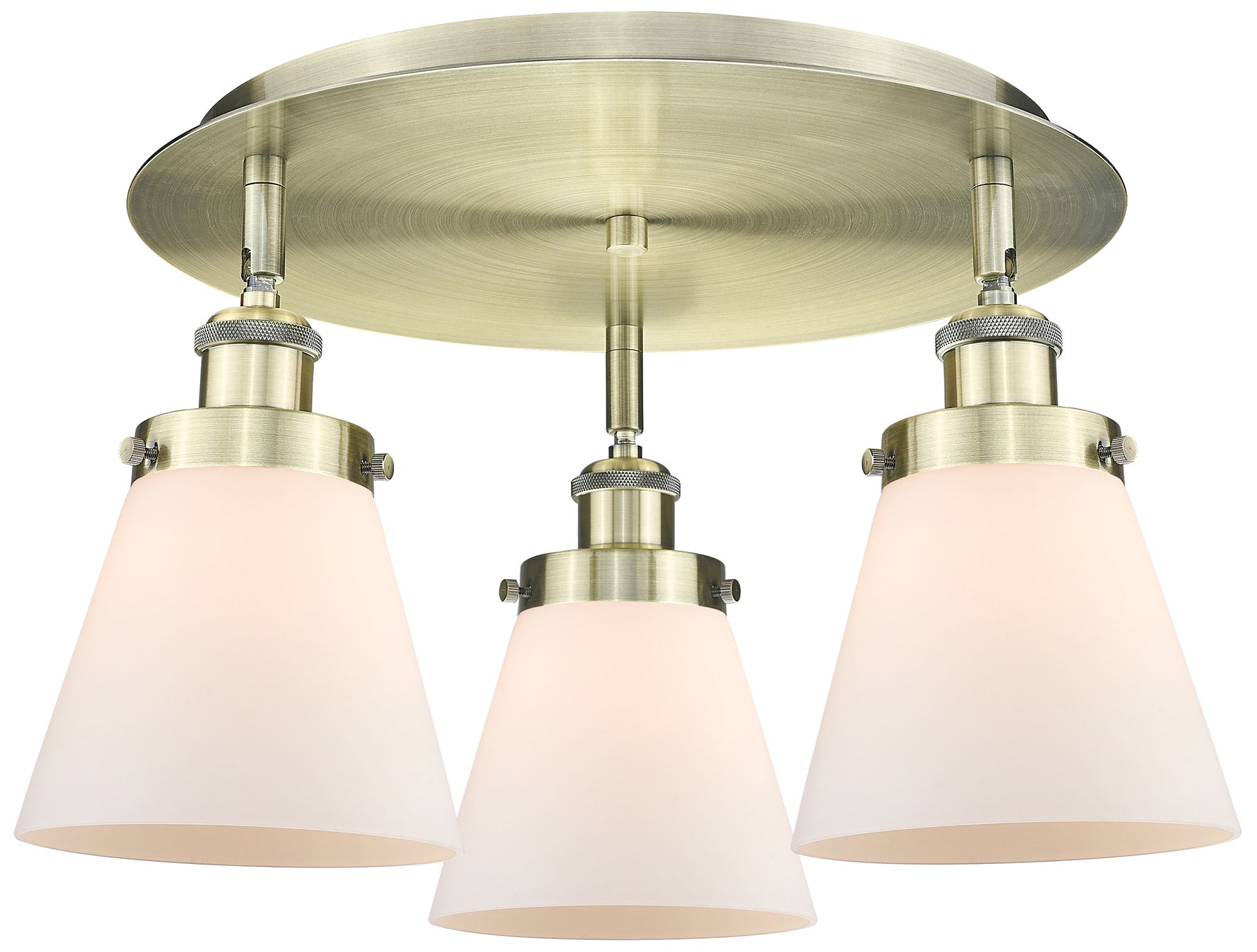 Cone 18"W 3 Light Antique Brass Flush Mount With Matte White Glass Sha