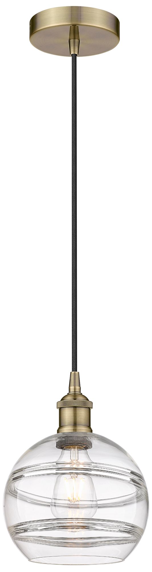 Edison Rochester 8" Wide Antique Brass Corded Mini Pendant w/ Clear Sh