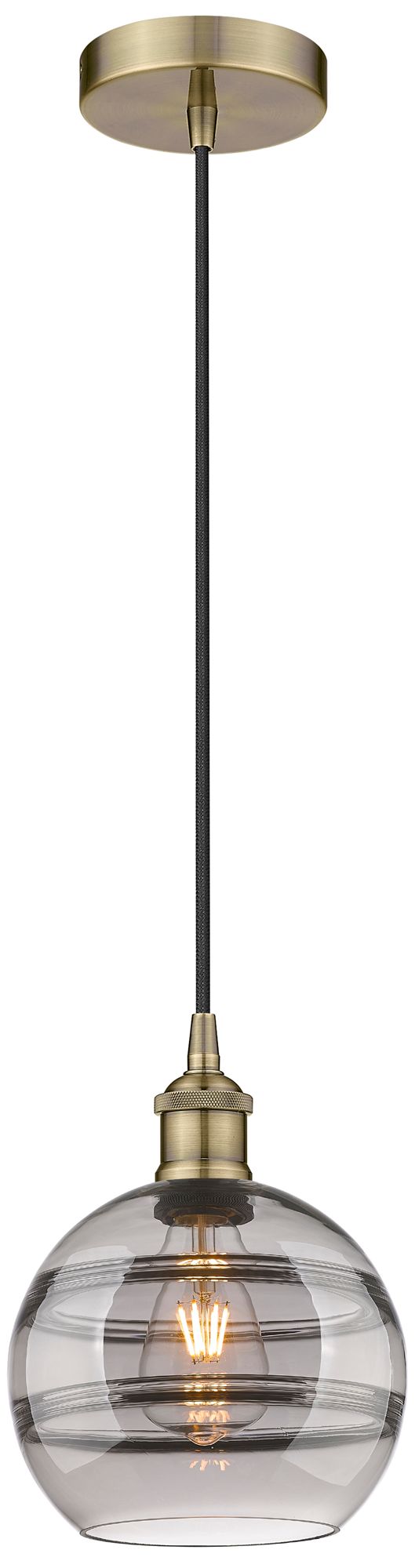 Edison Rochester 8"W Antique Brass Corded Mini Pendant w/ Light Smoke