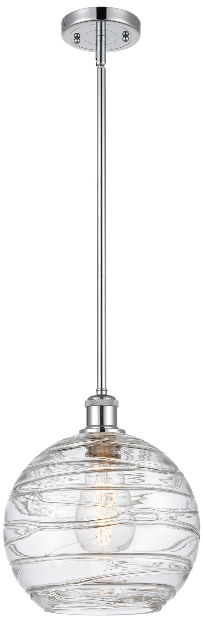 Athens 10" Polished Chrome Stem Hung Mini Pendant w/ Clear Deco Swirl
