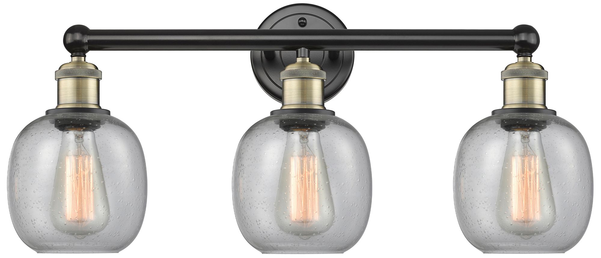 Belfast 24"W 3 Light Black Antique Brass Bath Vanity Light With Seedy