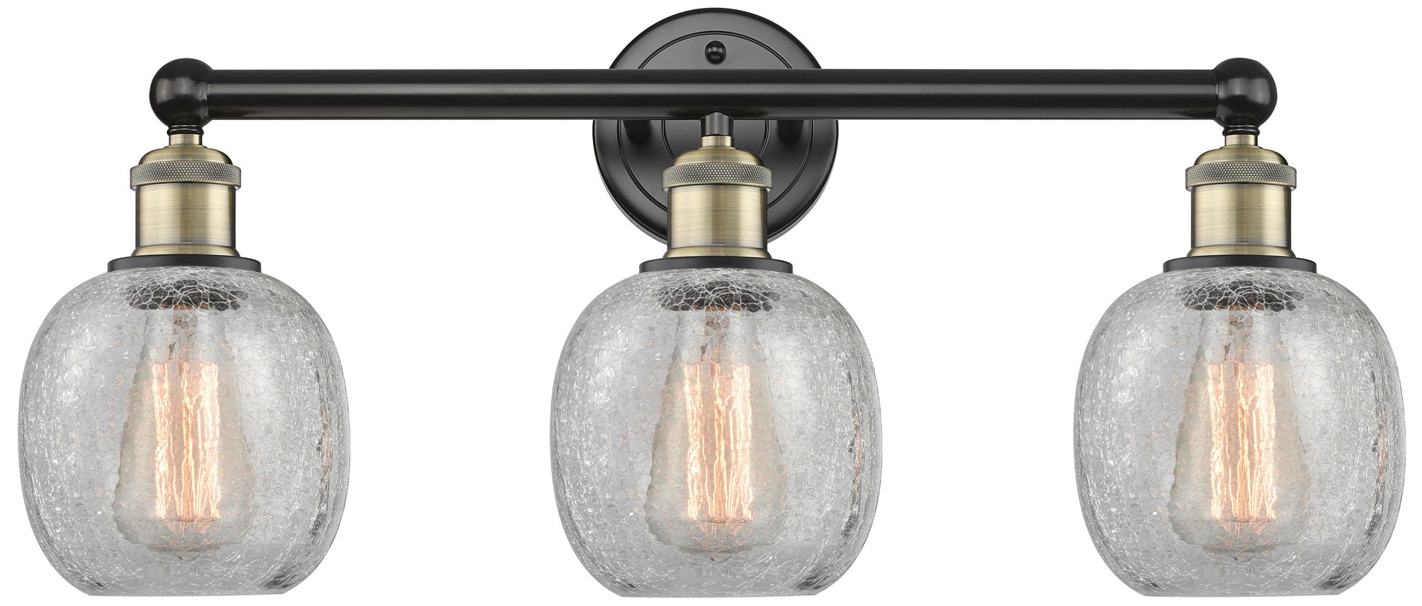 Belfast 24"W 3 Light Black Antique Brass Bath Light With Crackle Shade