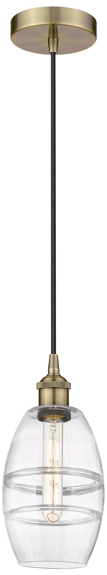 Edison Vaz 5.88" Wide Antique Brass Cord Hung Mini Pendant With Clear