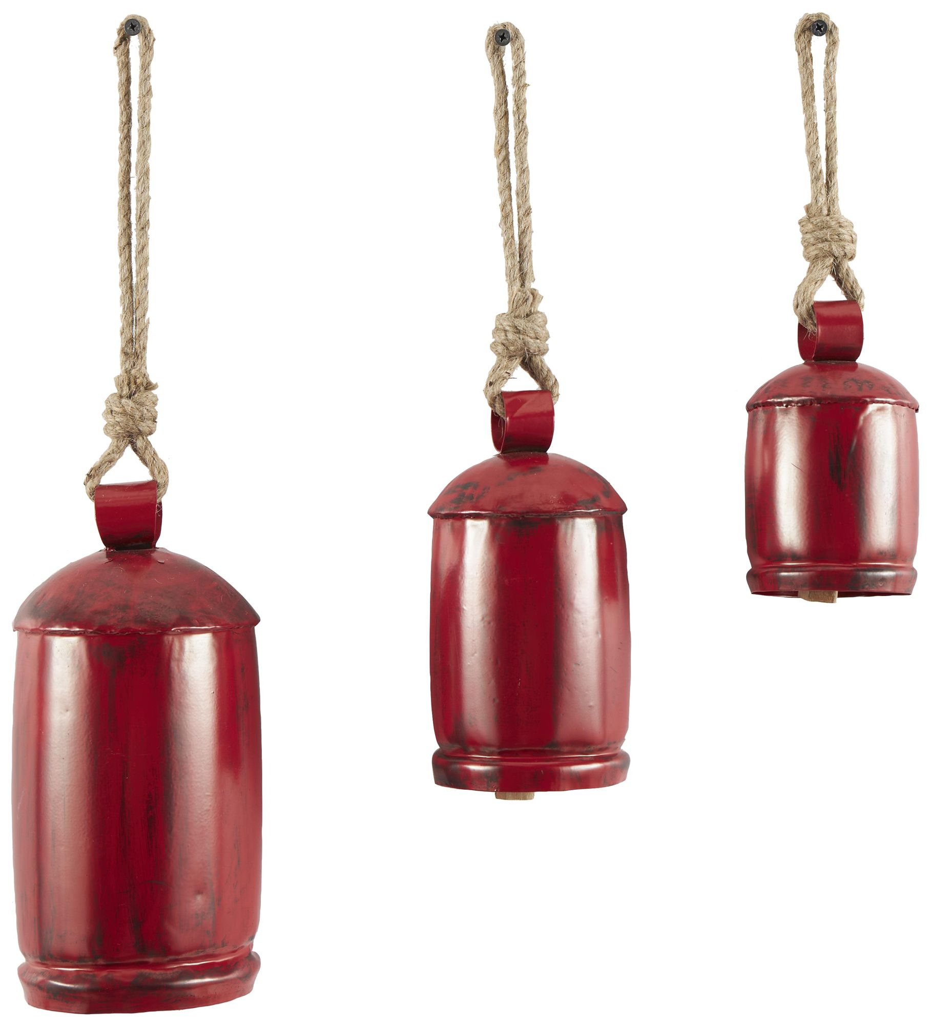 Red Metal Eclectic Decorative Cow Bells, S/3 10",8",6"H