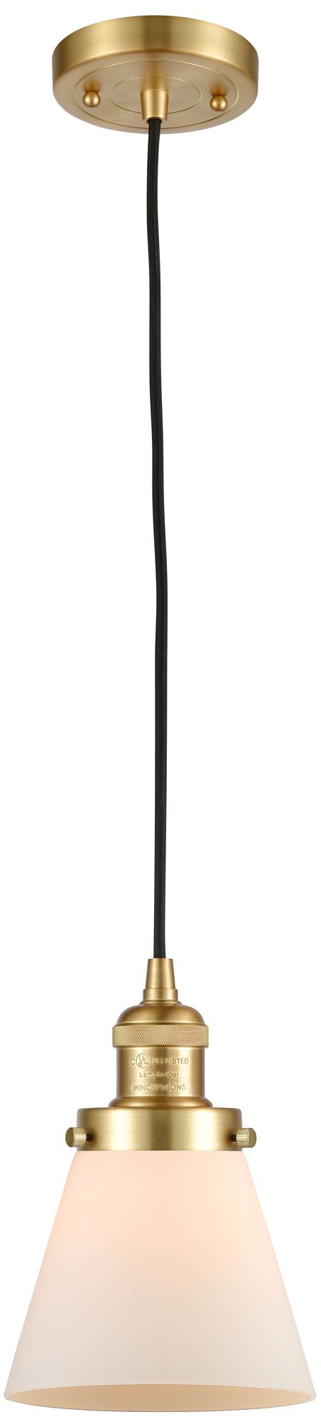 Franklin Restoration Cone 6" Satin Gold Corded Mini Pendant w/ White S