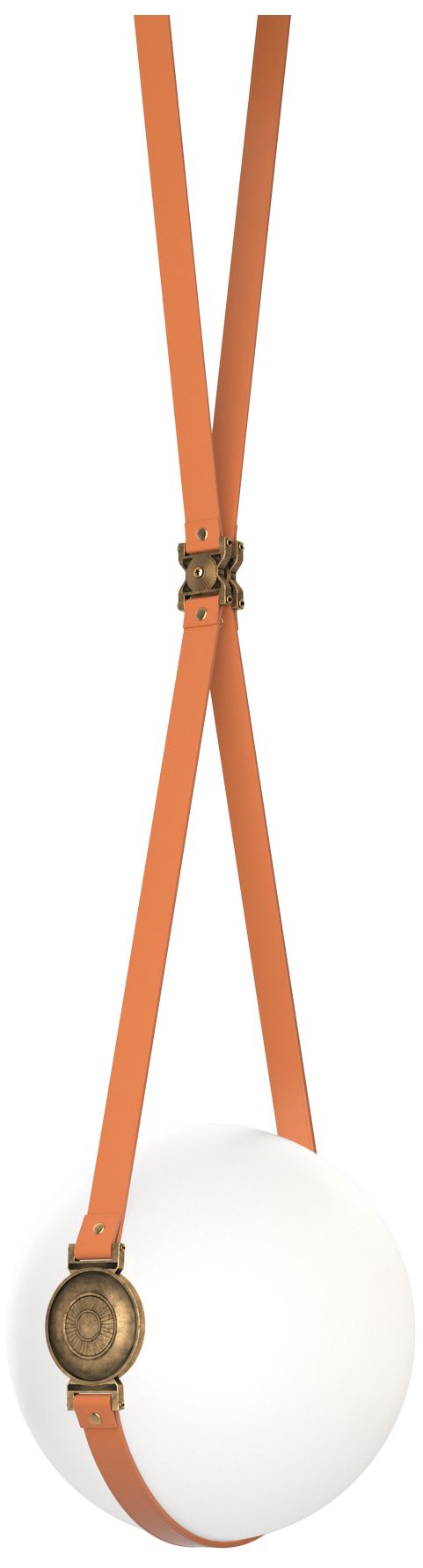 Derby 10.9"W Brass Accented LED Pendant w/ Chestnut Straps and Opal Sh