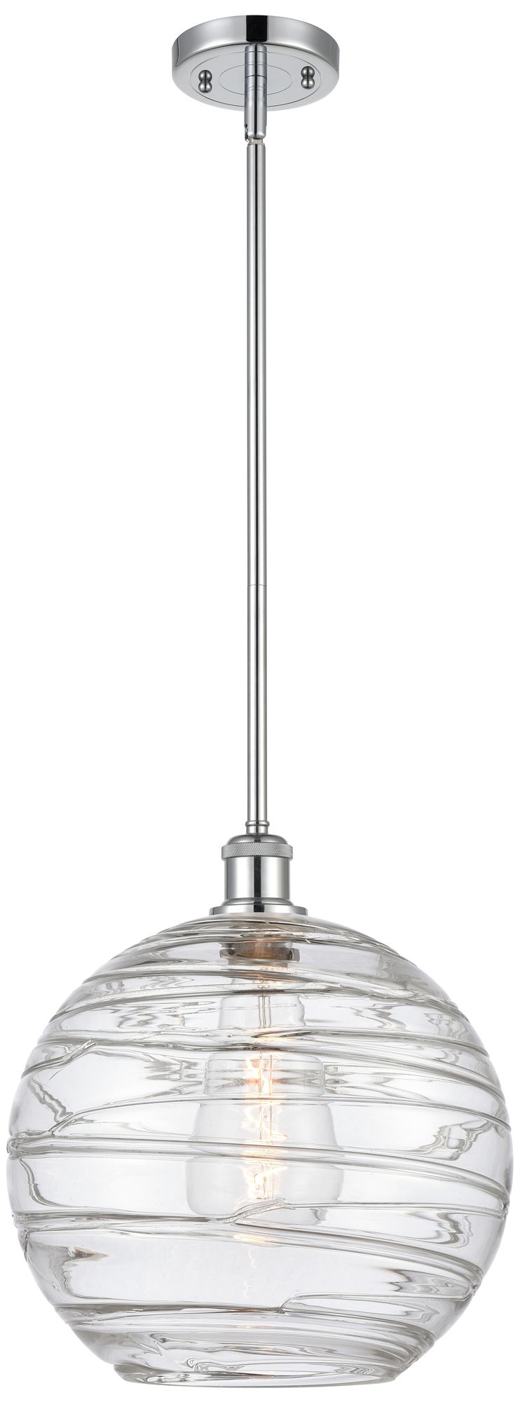 Athens 12" Polished Chrome Stem Hung Mini Pendant w/ Clear Deco Swirl