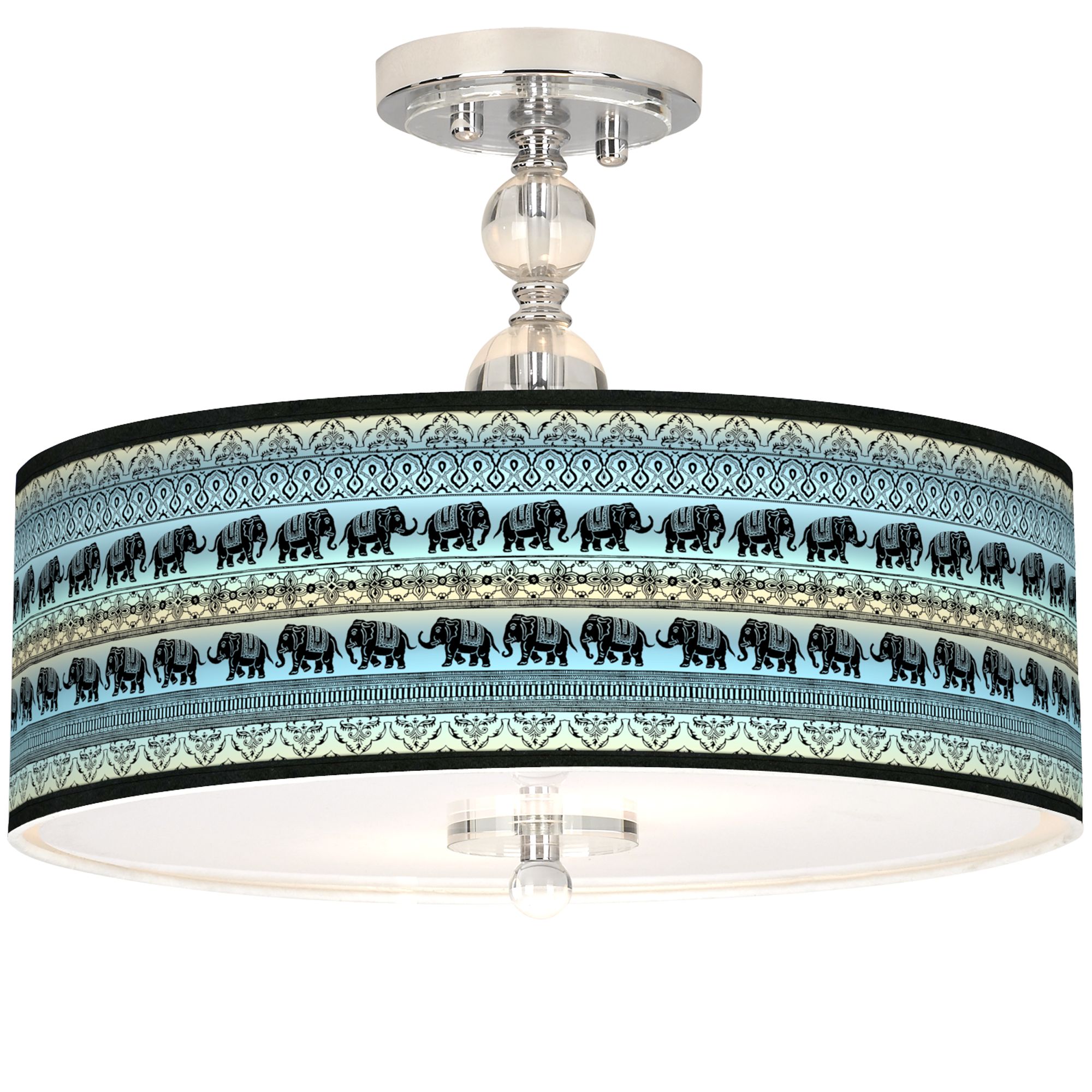 Elephant March Giclee 16" Wide Semi-Flush Ceiling Light