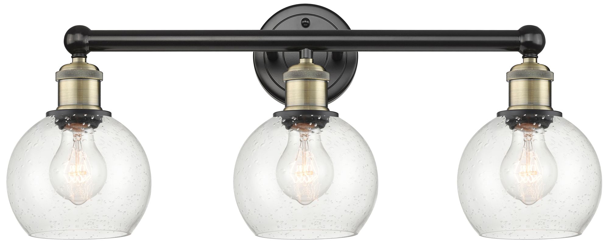Athens 24"W 3 Light Black Antique Brass Bath Vanity Light With Seedy S