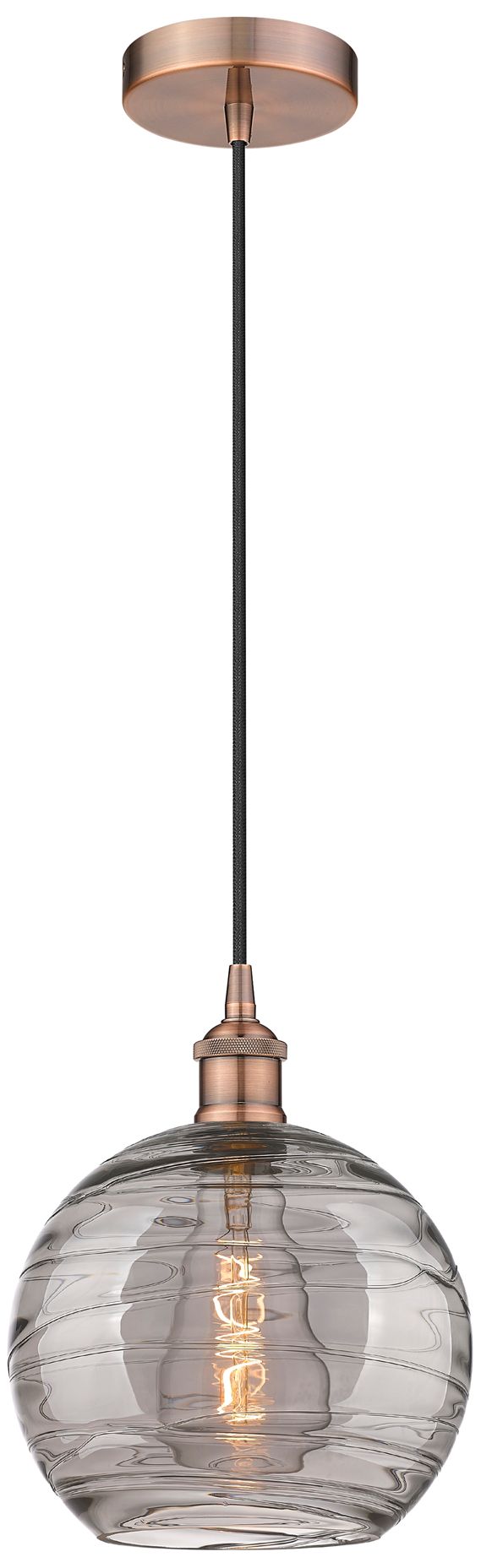 Edison Athens 10"W Antique Copper Corded Mini Pendant w/ Smoke Swirl S