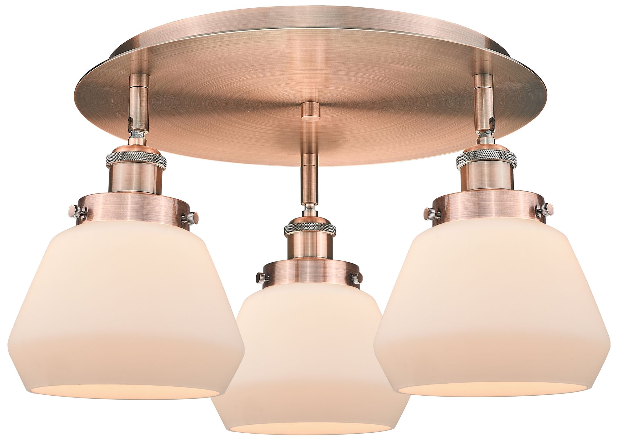 Fulton 18.25"W 3 Light Antique Copper Flush Mount w/ White Shade