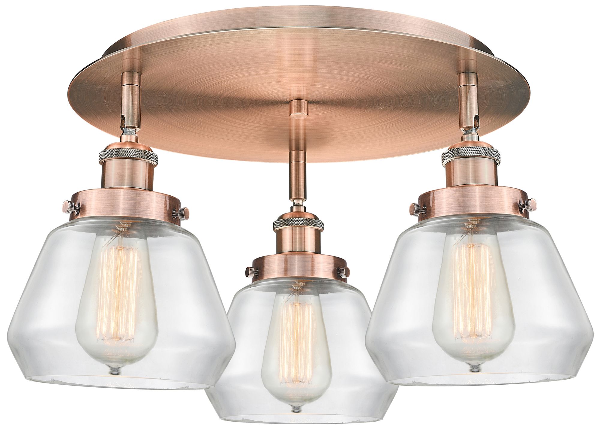 Fulton 18.25"W 3 Light Antique Copper Flush Mount With Clear Glass Sha
