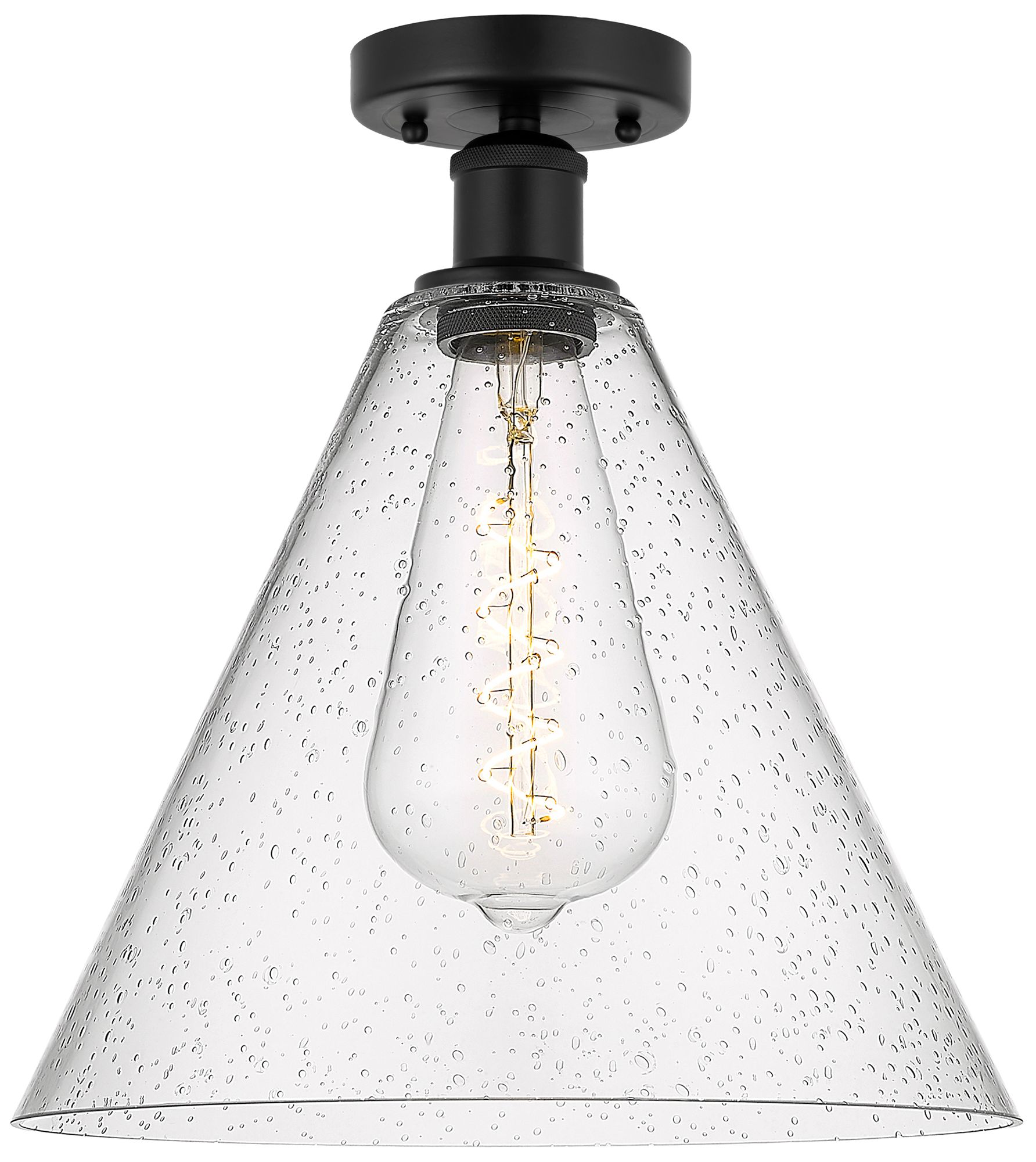 Edison Berkshire 12" Semi-Flush Mount - Matte Black - Seedy Shade