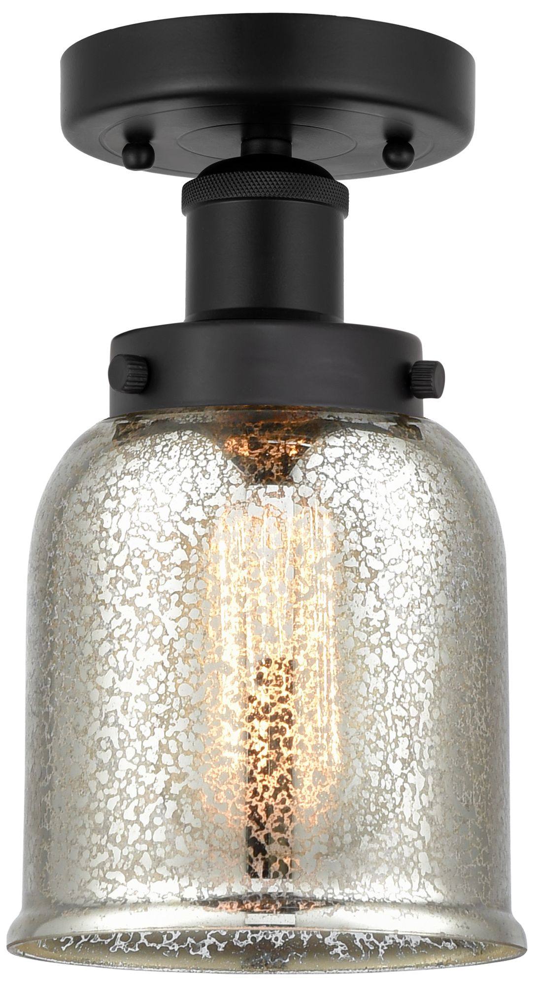 Edison Small Bell 7" Matte Black Semi Flush Mount w/ Mercury Shade