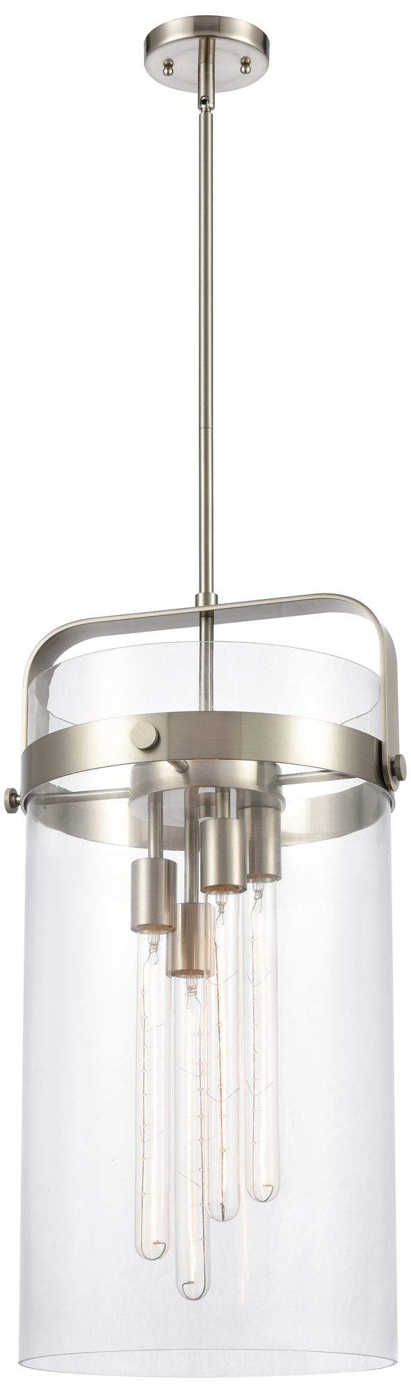 Pilaster 13.38" Wide 4 Light Stem Hung Satin Nickel Pendant w/ Clear S