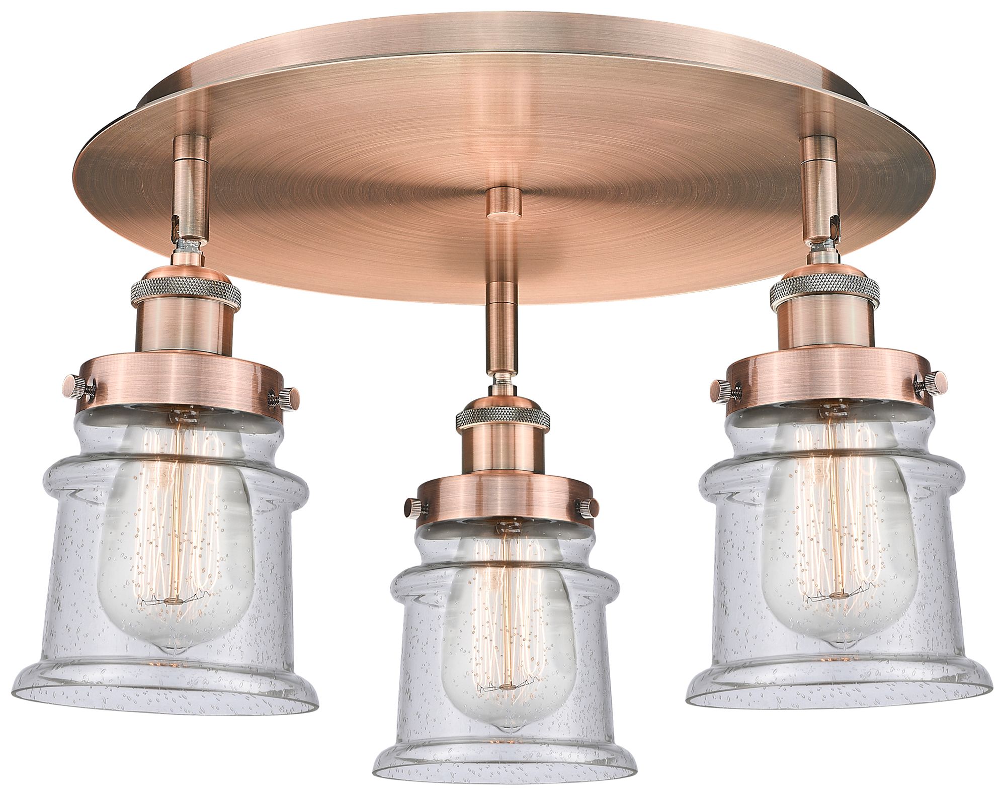 Canton 17" Wide 3 Light Antique Copper Flush Mount With Seedy Glass Sh