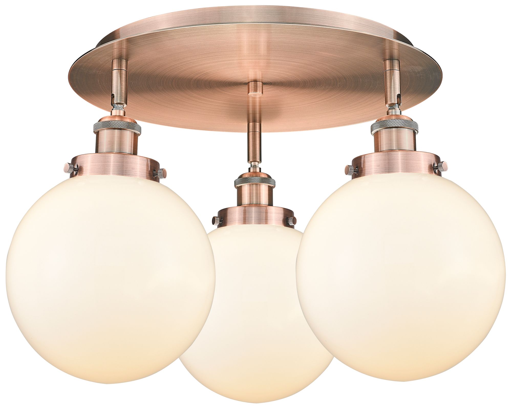 Canton 19.75"W 3 Light Antique Copper Flush Mount w/ White Shade
