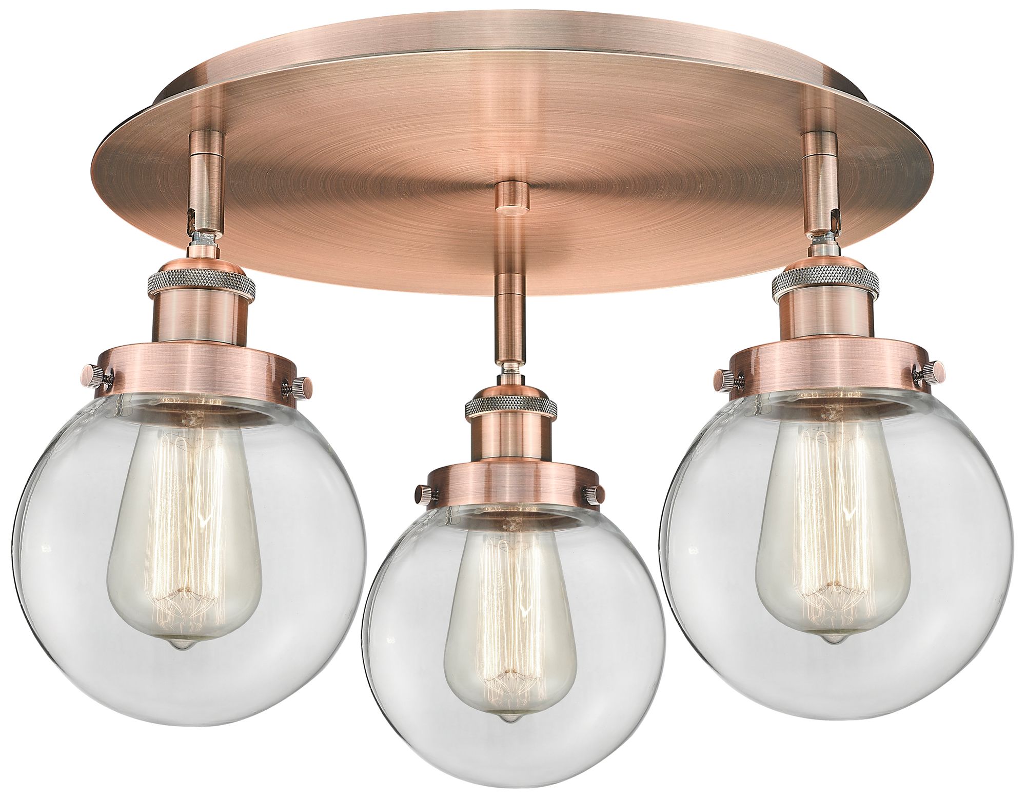 Beacon 17.75"W 3 Light Antique Copper Flush Mount With Clear Glass Sha