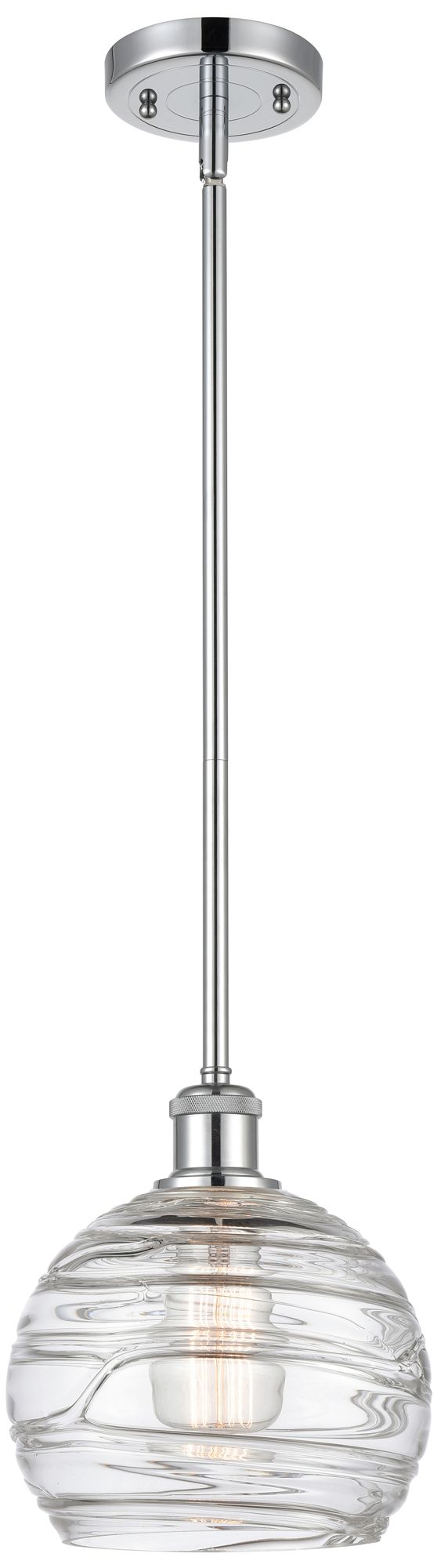 Athens 8" Polished Chrome Stem Hung Mini Pendant w/ Clear Deco Swirl S