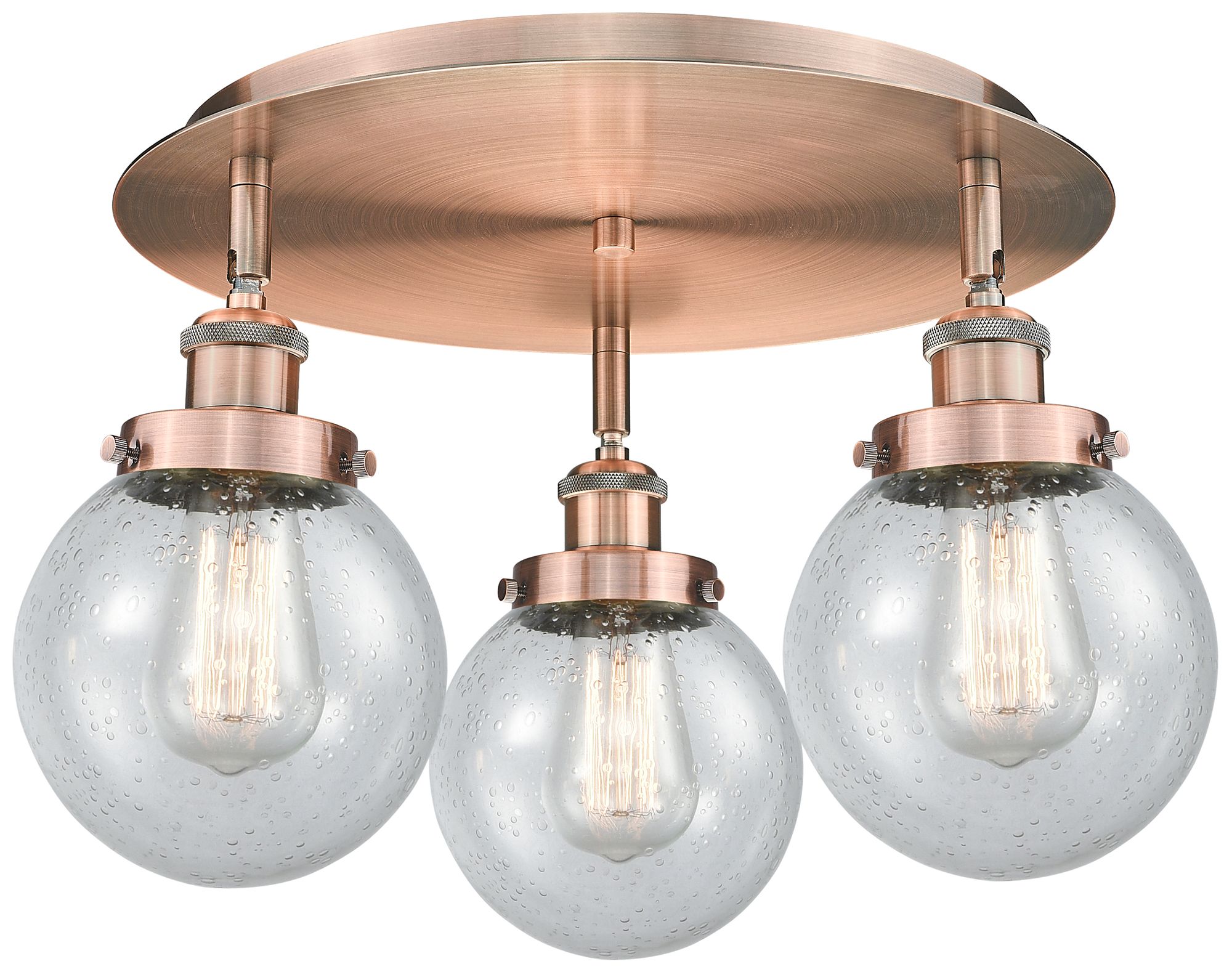 Beacon 17.75"W 3 Light Antique Copper Flush Mount With Seedy Glass Sha