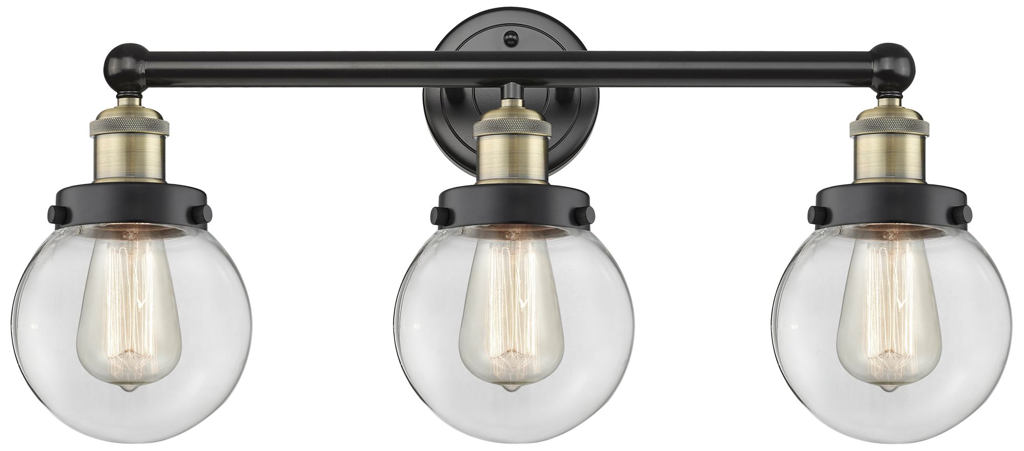 Small Edison Beacon 24.5"W 3 Light Black Brass Bath Light With Clear S