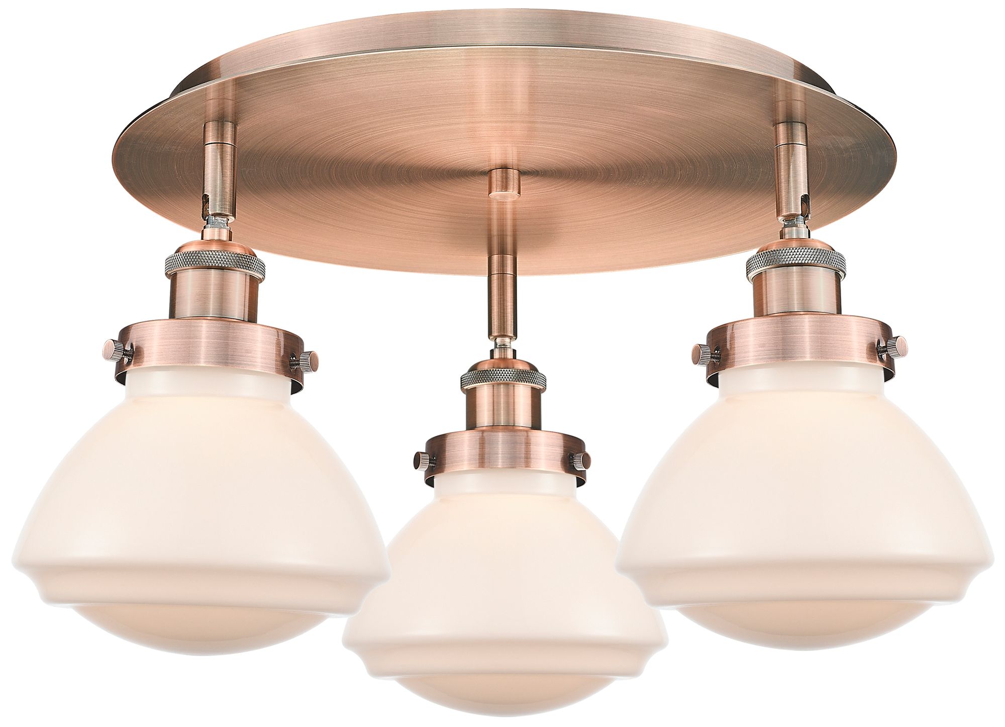 Olean 18.25"W 3 Light Antique Copper Flush Mount w/ Matte White Glass