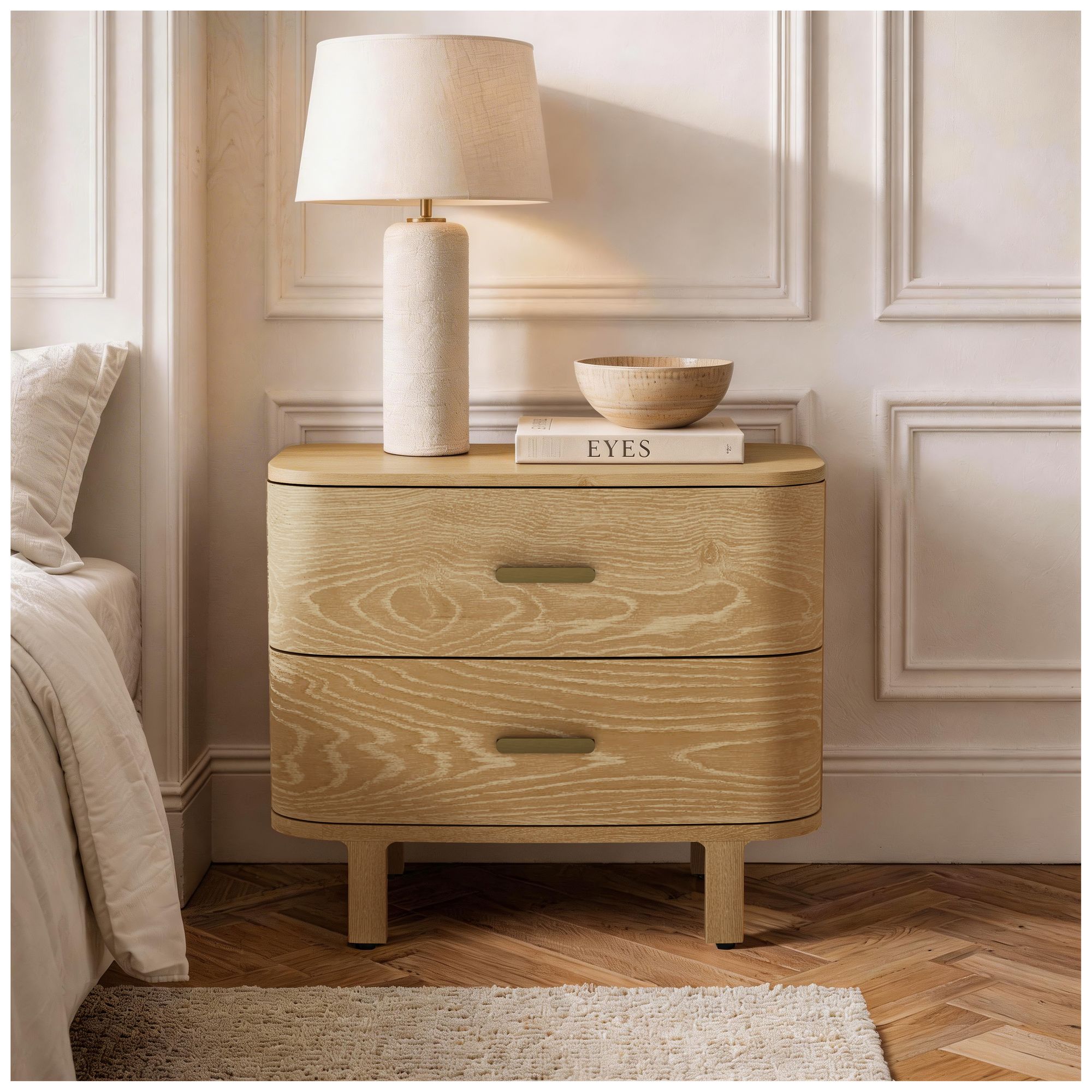 Solara Contemporary 30" Solid Wood Nightstand in Natural Oak (2-Drawer)