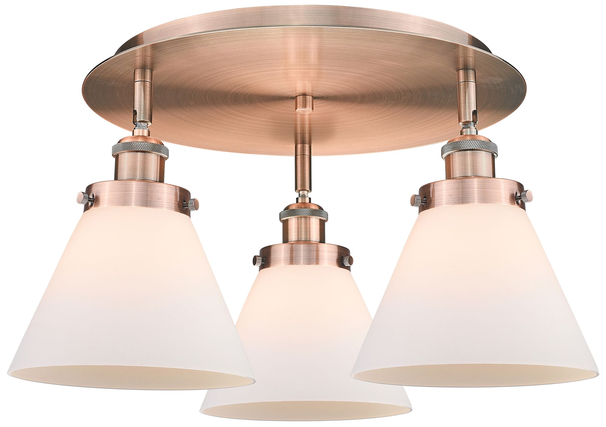 Cone 19.5"W 3 Light Antique Copper Flush Mount With Matte White Glass
