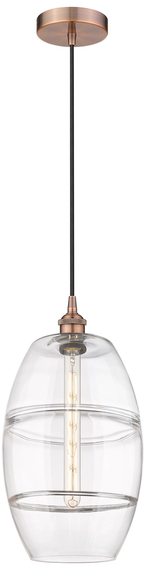Edison Vaz 10" Wide Antique Copper Cord Hung Mini Pendant With Clear S