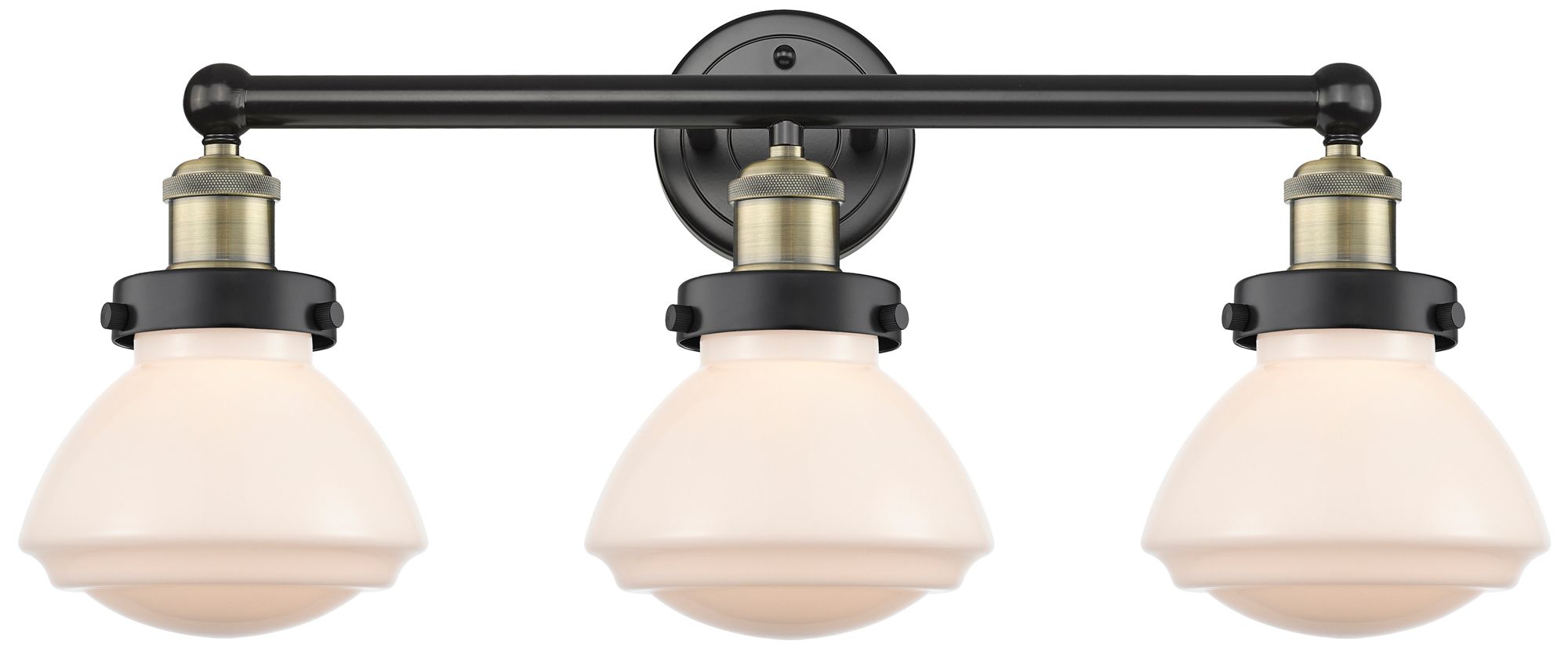 Olean 24.5"W 3 Light Black Antique Brass Bath Vanity Light With White