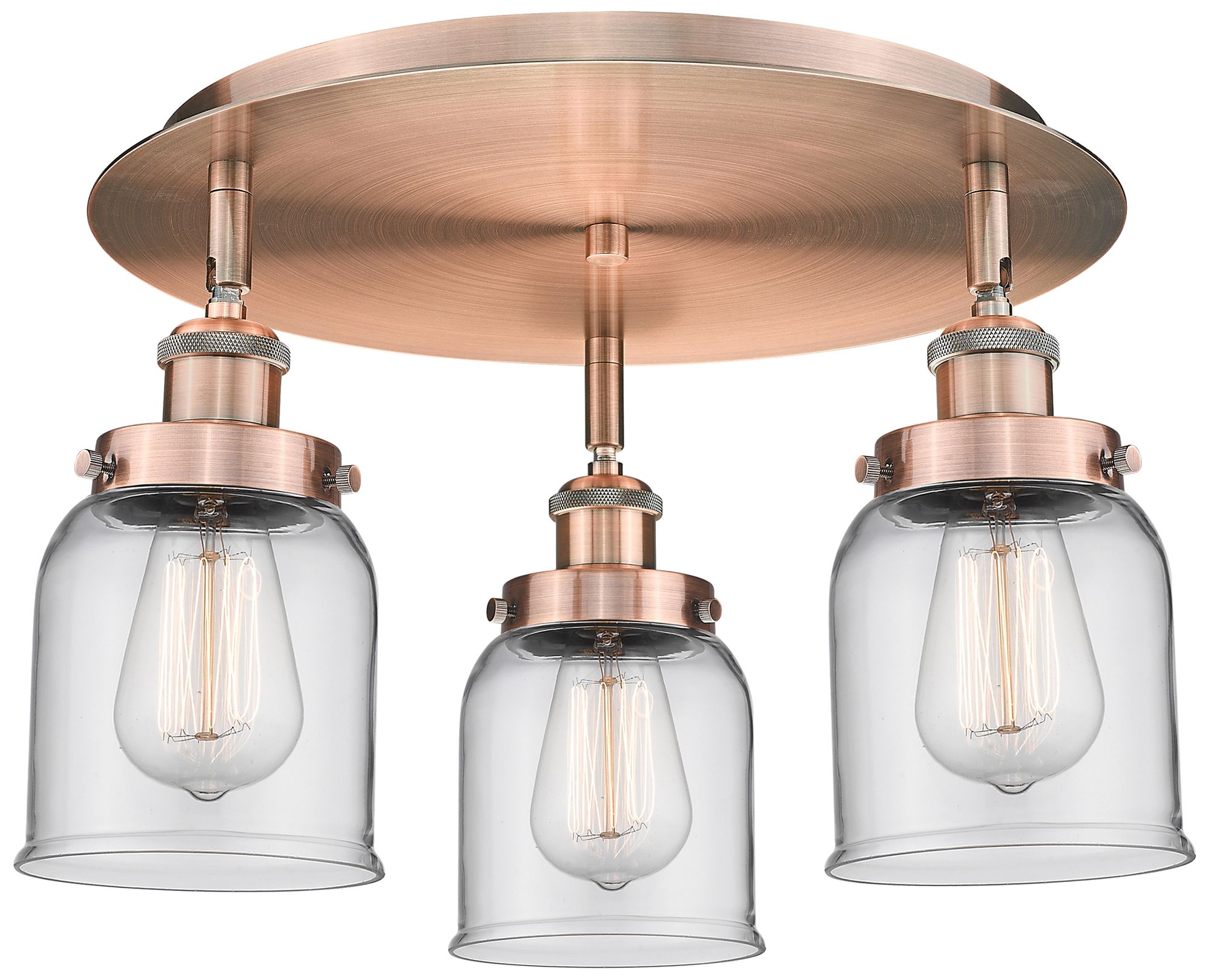 Bell 16.75" Wide 3 Light Antique Copper Flush Mount With Clear Glass S