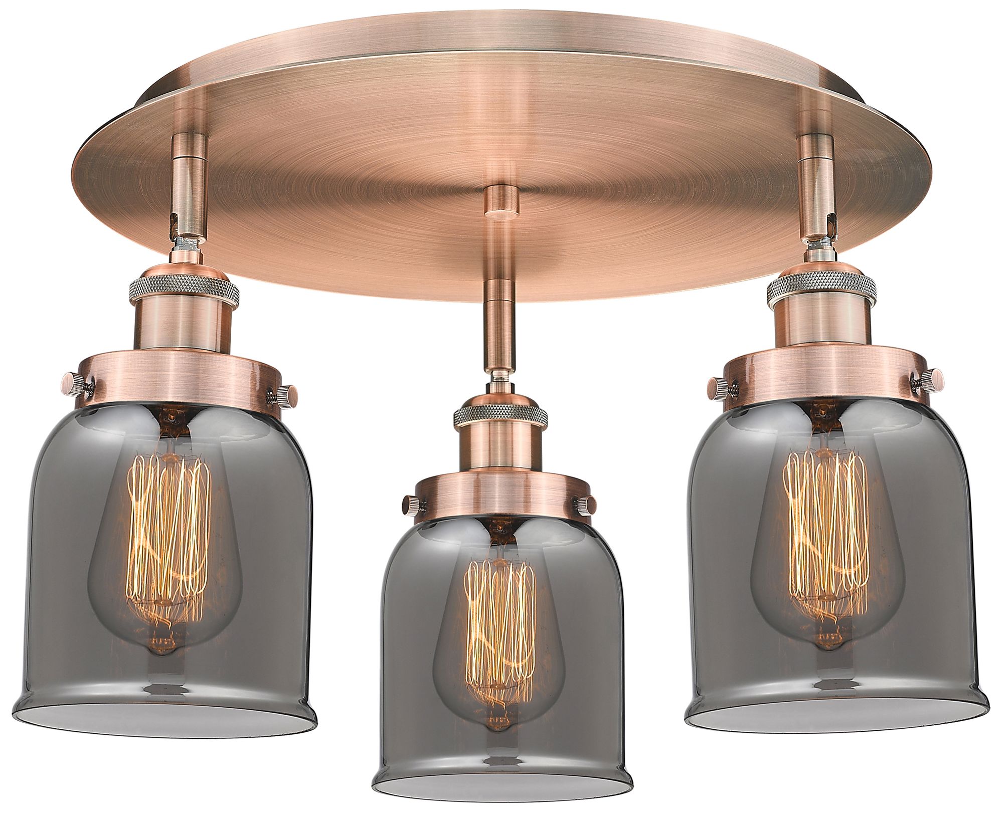 Bell 16.75"W 3 Light Antique Copper Flush Mount w/ Plated Smoke Glass