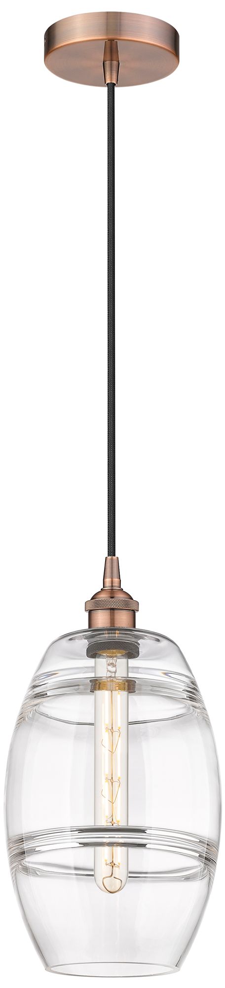 Edison Vaz 8" Wide Antique Copper Cord Hung Mini Pendant With Clear Sh