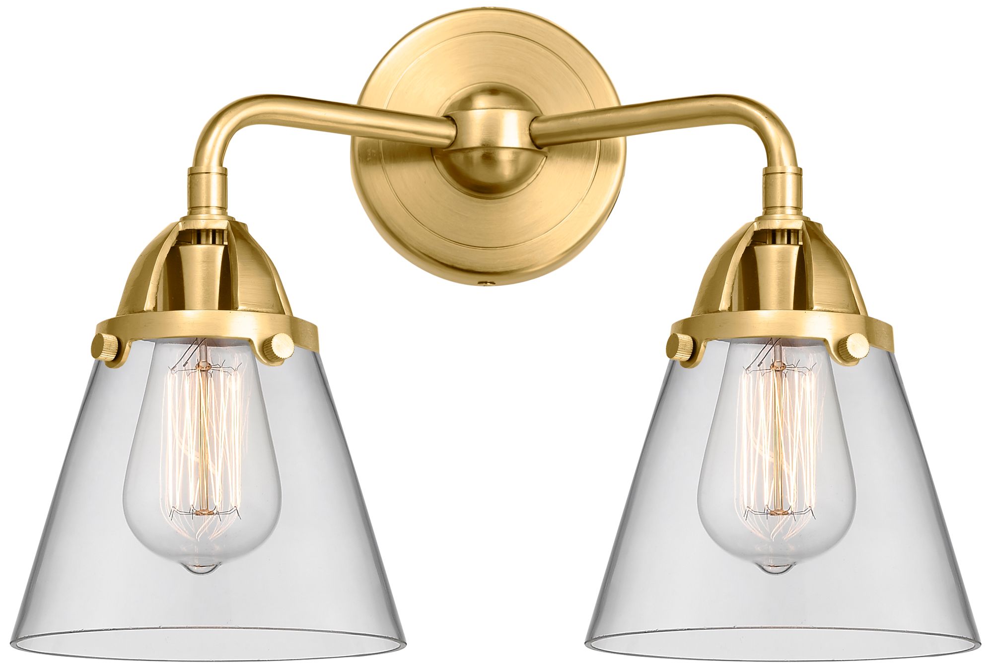 Nouveau 2 Cone 6" 2 Light 14" Bath Light - Satin Gold - Clear Sha