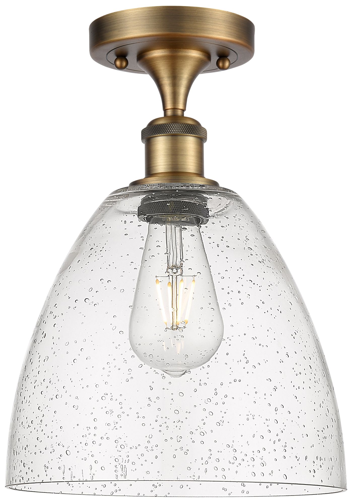Bristol Glass 9" Semi-Flush Mount - Brushed Brass - Seedy Shade