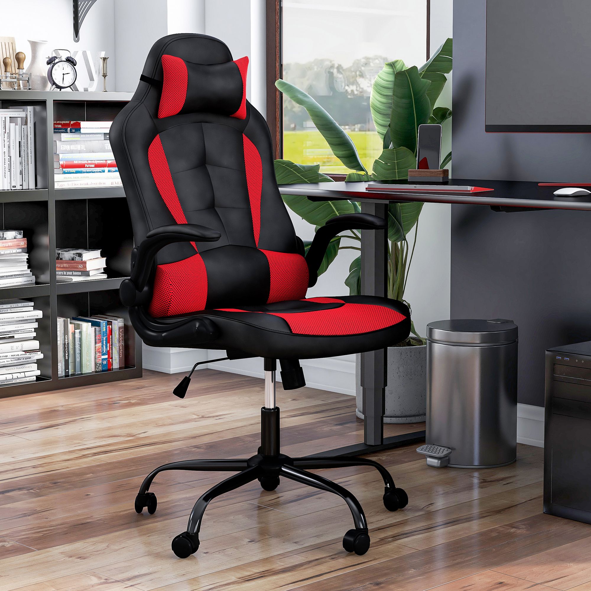 Aidans Red Black Faux Leather Adjustable Gaming Chair