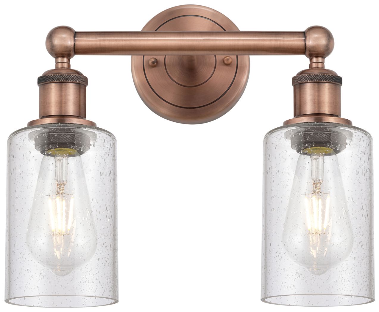 Clymer 12.88" Wide 2 Light Antique Copper Bath Vanity Light w/ Seedy S