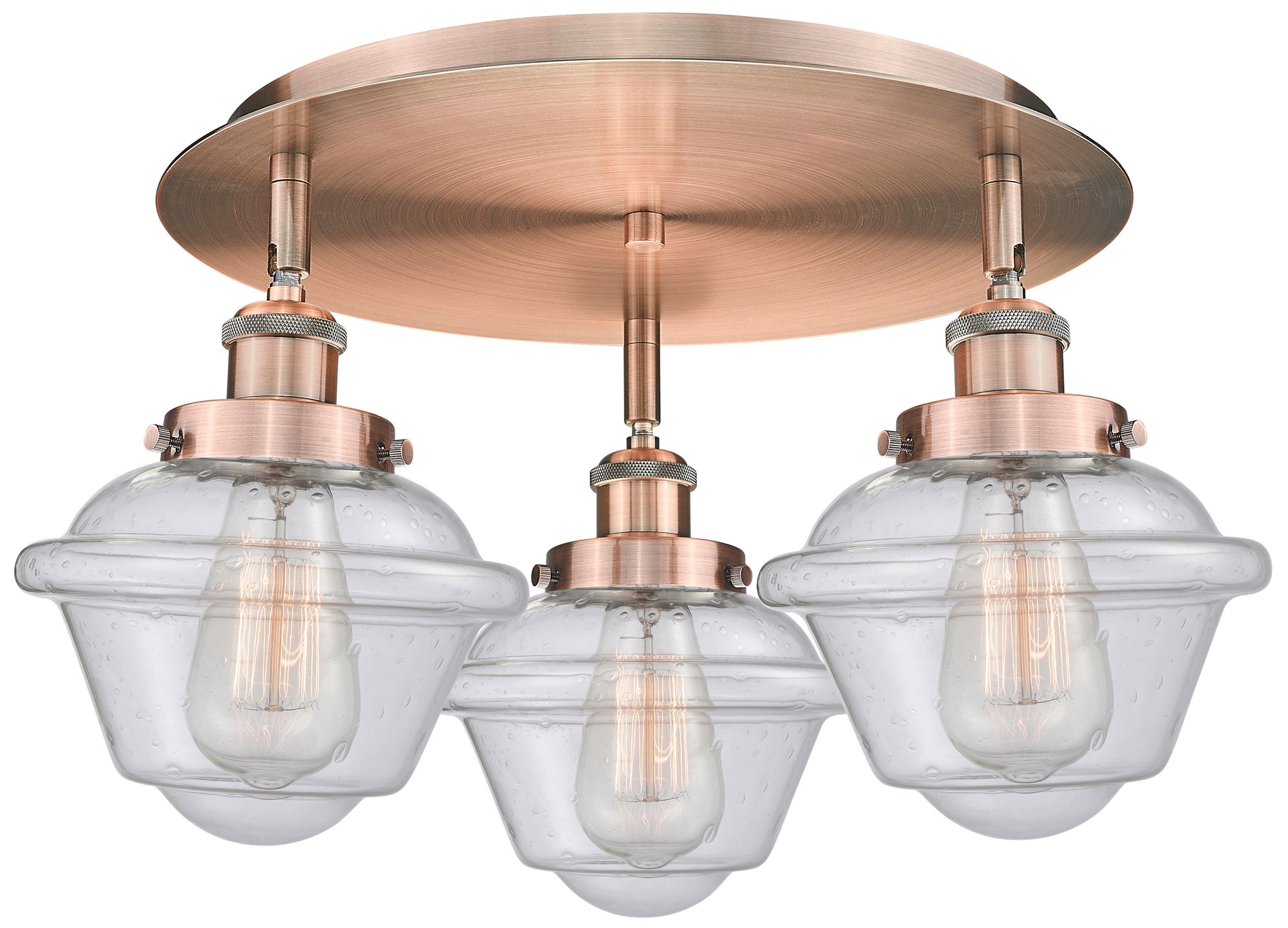 Oxford 18.25"W 3 Light Antique Copper Flush Mount With Seedy Glass Sha