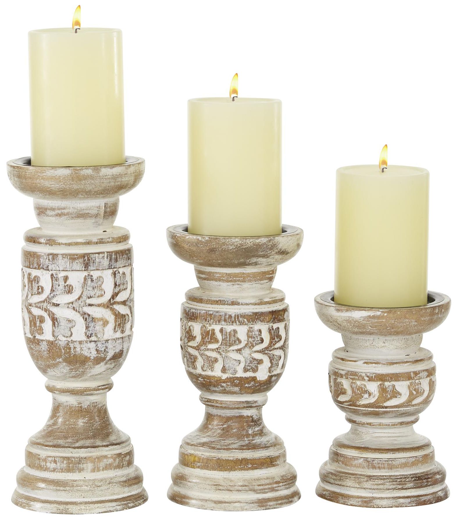 Brown Wood Floral Handmade Decorative Candle Holder, Set of 3 6", 8", 10"H